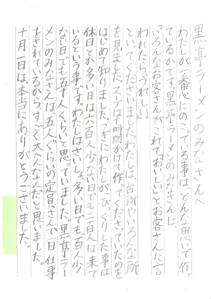 (※作文は先生方の許可を得て掲載させていただきました。)