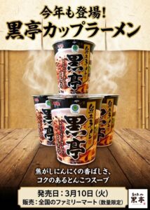 黒亭カップラーメンが、今年も発売されることとなりました。